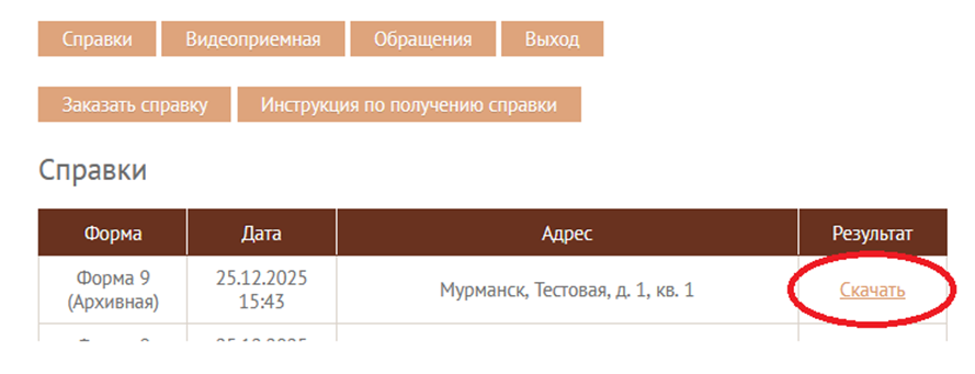 Шаг 5. Ответ поступит в течение 5 рабочих дней. Справка будет доступна в разделе Справки. Чтобы её получить необходимо нажать Скачать.