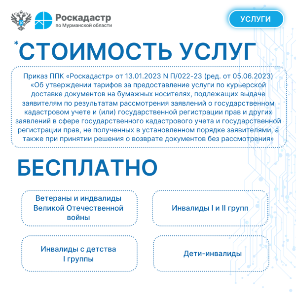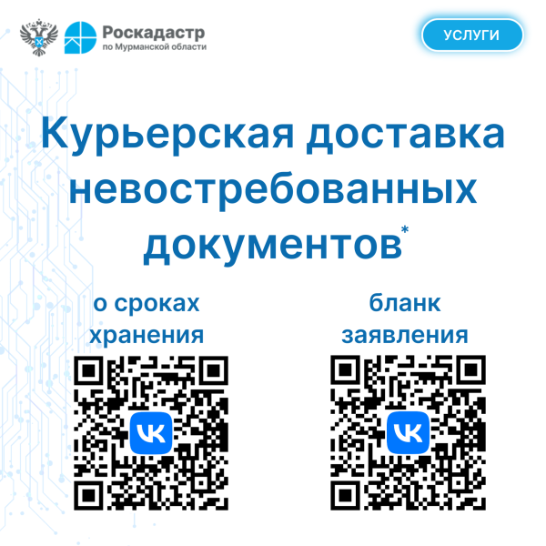2. Независимо от места хранения документов по заявлению и предоставлению документа, удостоверяющий личность, в том числе по экстерриториальному принципу в офисах филиалов ППК «Роскадастр» в любом регионе Российской Федерации (например, находясь в городе Мурманске, можно запросить неполученные вовремя документы по объекту недвижимости в городе Владимире бесплатно, при этом дата доставки невостребованных документов в указанный в заявлении офис Роскадастра определяется в соответствии с логистикой перемещения документов между офисами, заявитель по телефону будет уведомлен о доставке документов). В данном случае заявление направляется в ППК «Роскадастр» по Мурманской области от филиалов других регионов посредством электронной почты или СЭД.