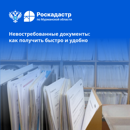 Готовые к выдаче документы по результатам осуществления учётно-регистрационных действий хранятся в офисах МФЦ 45 календарных дней. Вовремя не полученные в МФЦ документы передаются на хранение в архив филиала ППК «Роскадастр» по Мурманской области.