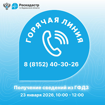 23 января 2026 года с 10:00 до 12:00 в мурманском Роскадастре пройдет горячая линия по вопросам получения сведений из Государственного фонда данных, полученных в результате проведения землеустройства (ГФДЗ).